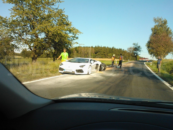 Một siêu xe Lamborghini Aventador LP700-4 màu trắng đã bị bắt gặp "nằm" ven đường với phần thân sau hư hỏng nặng. Vụ tai nạn được xác định xảy ra tại vùng Bohemia, Cộng hòa Séc. Hiện tại, nguyên nhân và thương vong của vụ tai nạn vẫn chưa được xác định.