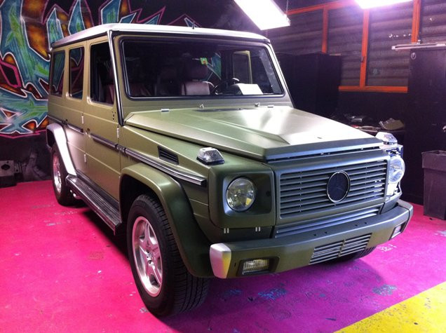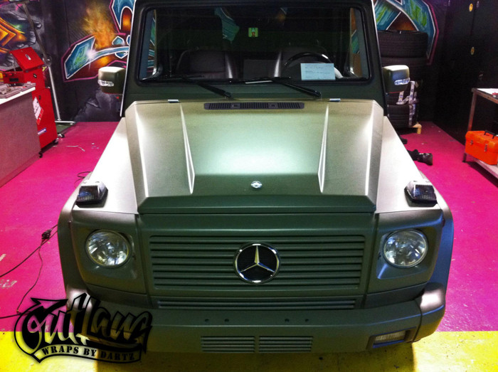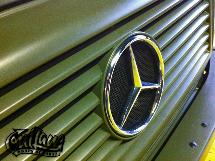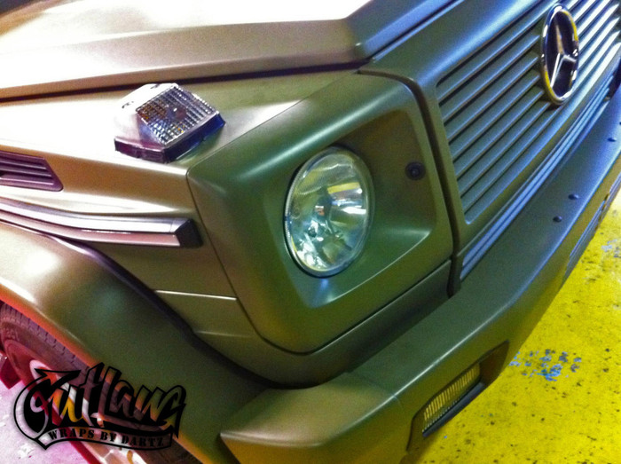 Dưới đây là những hình ảnh cận cảnh của chiếc Mercedes-Benz G55 AMG được khoác lên mình màu xanh quân đội: