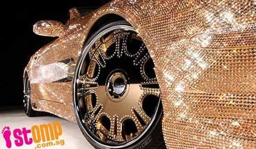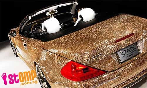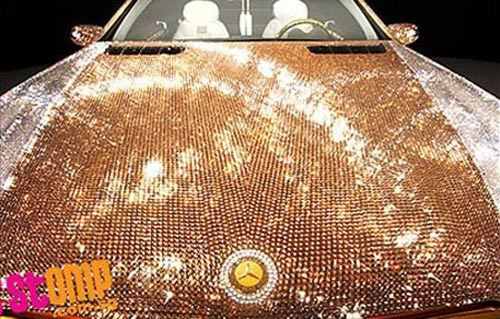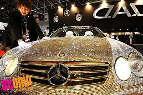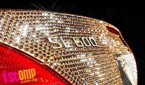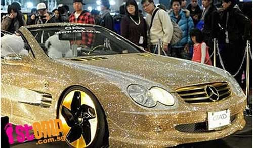 | Loại pha lê được đính trên chiếc xe này có tên gọi là Swarovski, chiếc xe Mercedes-Benz SL600s này đã từng được trưng bày tại Salon Auto Tokyo, Nhật Bản hồi năm 2011 thu hút sự chú ý của rất nhiều người xem. |