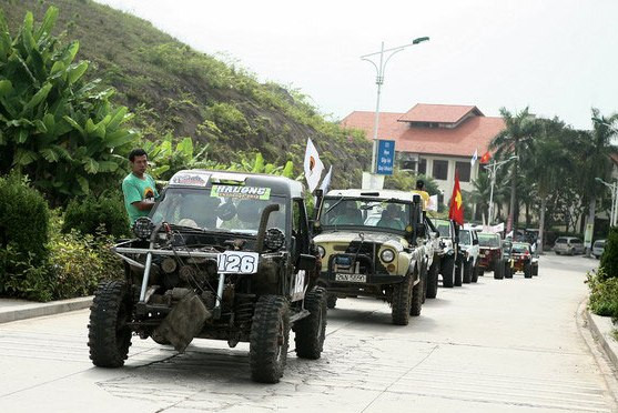 | Các chiến mã offroad bắt đầu cuộc diễu hành qua các tuyến phố thành phố Hạ Long. |