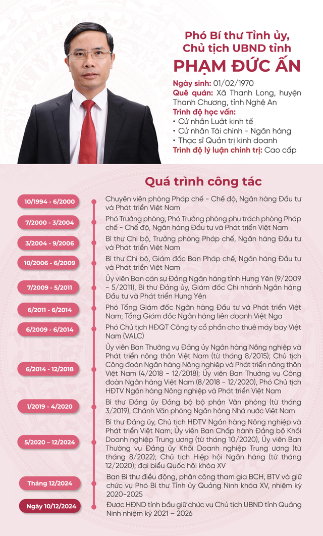 Quá trình công tác của tân Chủ tịch Ủy ban nhân dân tỉnh Quảng Ninh Phạm Đức Ấn