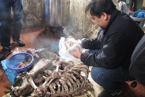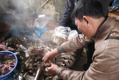 Tại hiện trường, các bộ phận của cá thể hổ đang được nấu chín rồi róc thịt lấy xương nấu cao. Một lượng thịt hổ còn tươi được xắt thành miếng để trong rổ. Cơ quan chức năng cũng đồng thời phát hiện 15 kg xương động vật được xác định là loài sơn dương đã được làm thịt.