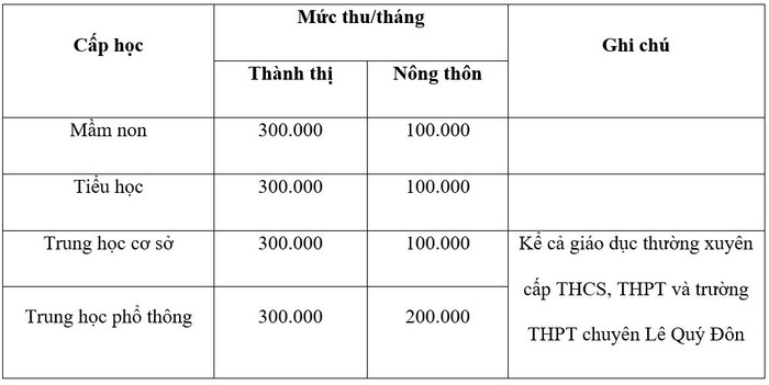Mức thu cụ thể đối với giáo dục mầm non, giáo dục phổ thông như sau: