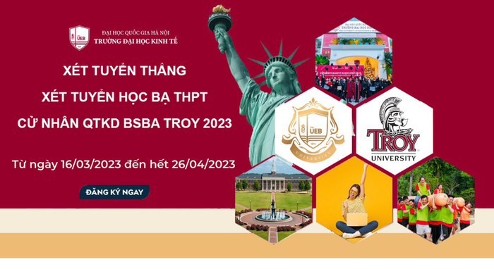 1. Xét tuyển chương trình Cử nhân Quản trị Kinh doanh, hệ đại học chính quy do Đại học Troy, Hoa Kỳ cấp bằng