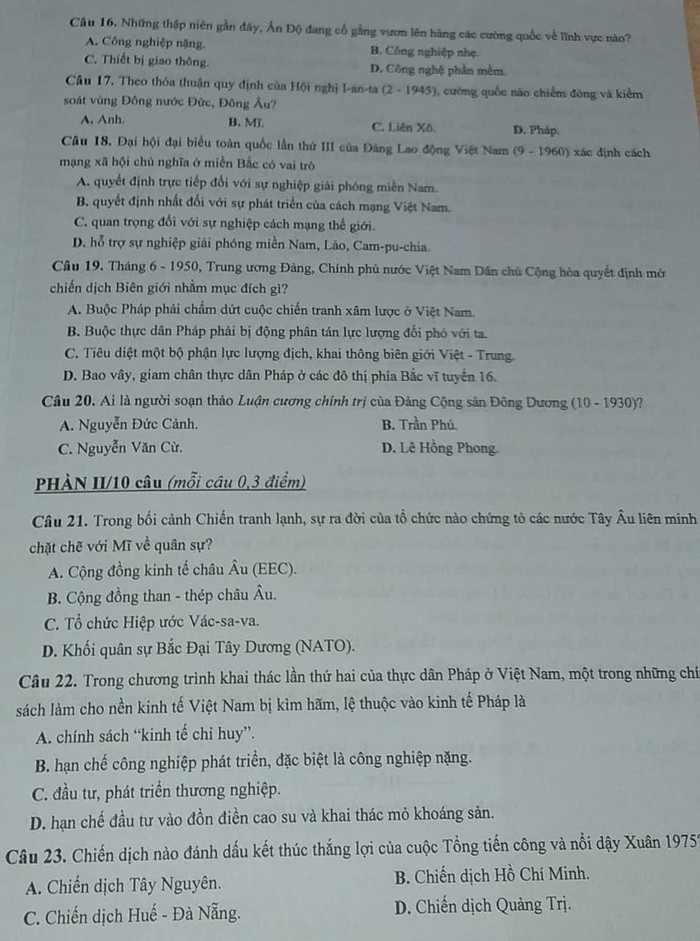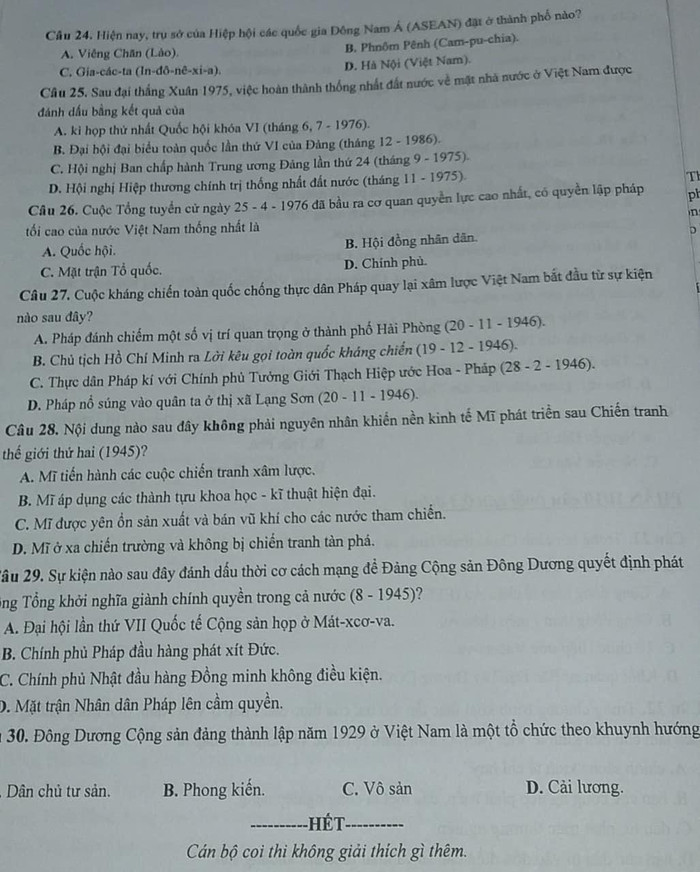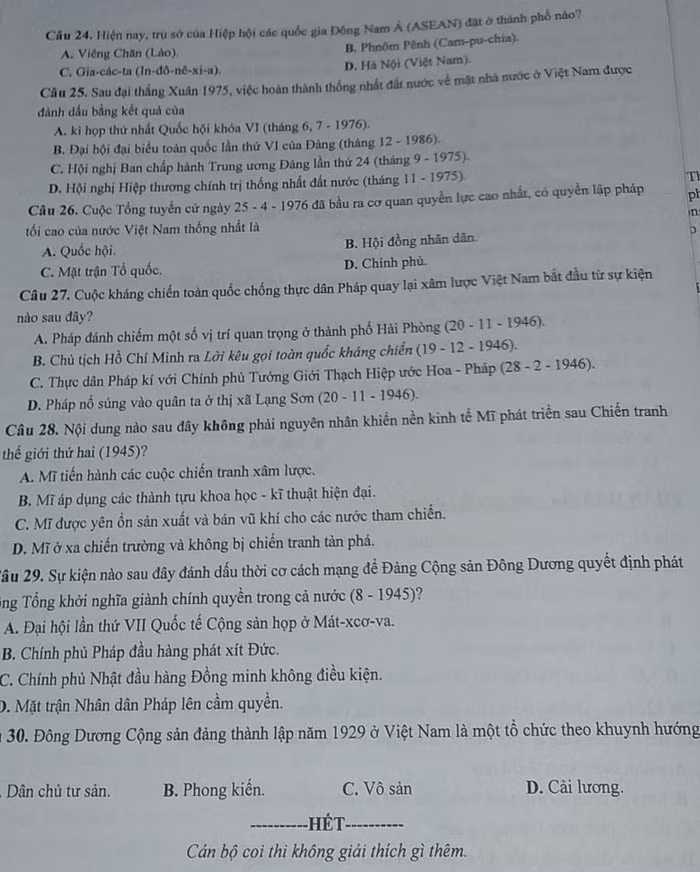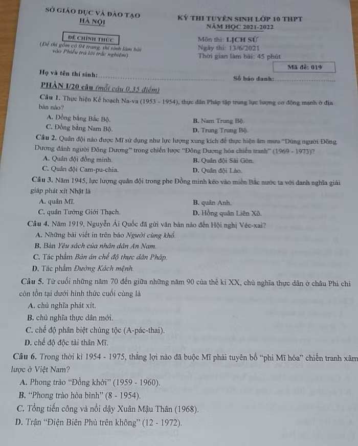 | Gợi ý đáp án mã đề 019, môn Lịch sử kỳ thi vào lớp 10 của Hà Nội do hệ thống giáo dục HOCMAI giải |