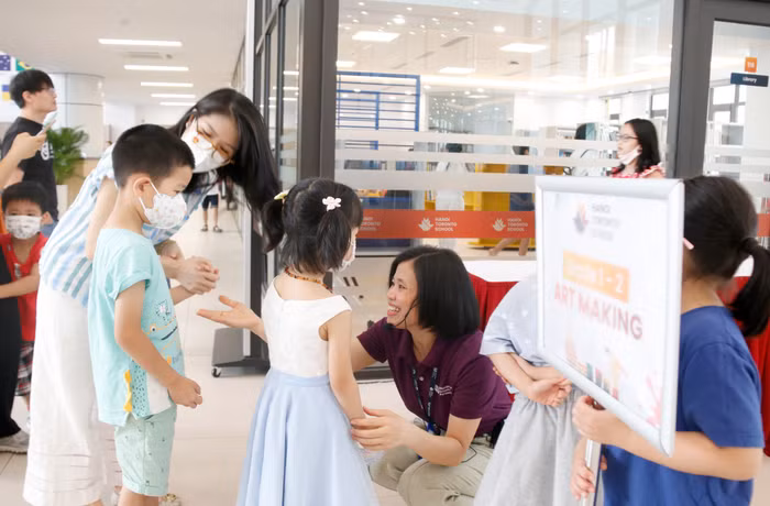 Trong lúc các bậc phụ huynh trực tiếp tham gia tour tham quan cơ sở vật chất hiện đại theo tiêu chuẩn quốc tế như phòng STEM công nghệ cao, Nghiên cứu khoa học, Công nghệ Thực phẩm; Trung tâm biểu diễn Nghệ thuật bể bơi bốn mùa trong nhà…; thì các bạn học sinh lại được tham gia chuỗi hoạt động phân theo lứa tuổi như: Khám phá Ngôn ngữ Anh (học sinh chuẩn bị vào lớp 1); Công nghệ Thực phẩm (học sinh chuẩn bị vào lớp 2-3); Thí nghiệm Khoa học (học sinh chuẩn bị vào lớp 4-5); Nghệ thuật Ngôn ngữ Anh (học sinh chuẩn bị vào lớp 6-8).