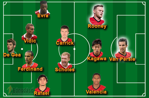 - Với đội hình này, Sir Alex không chỉ giữ được cặp tiền đạo Rooney – Van Persie trên hàng công mà còn giúp Shinji Kagawa tìm được vị trí sở trường, đó là thi đấu phía sau 2 tiền đạo trong vai trò số 10 đúng nghĩa. Sơ đồ này cũng giúp Man Utd phát huy được những miếng đánh biên từ Ashley Young (Welbeck) hay Antonio Valencia (Nani).