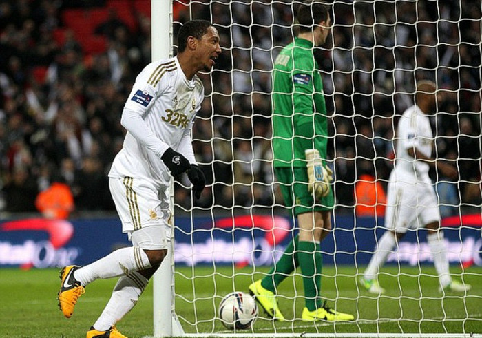 | Ngay sau giờ giải lao, Nathan Dyer lại ghi thêm bàn nữa để Swansea dẫn 3-0 |