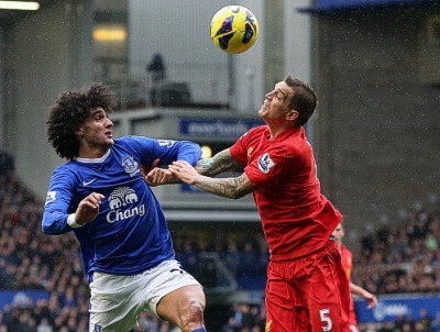 Với đội hình không có thay đổi gì, Liverpool vào trận một cách hơi cầm chừng cho tới phút 17. Leighton Baines có một quả treo bóng vào để Marouane Fellaini dứt điểm đi sạt cột dọc, và lập tức The Kop thức tỉnh.