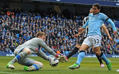 Sau giờ nghỉ, David Silva đón bóng từ Nasri và bị các hậu vệ Newcastle vây lấy, nhưng anh khôn khéo đẩy bóng sang tay trái trước khi sút ở góc hẹp, bóng đi cắt mặt cầu môn và tung lưới Newcastle ở phía góc xa.