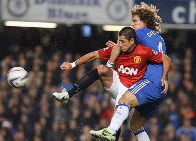 45' Chelsea đang chật vật phá bóng và suýt nữa biếu bàn thắng nữa cho United. Đầu tiên, Cole đánh đầu về và suýt bị Chicharito cướp lấy. Thứ hai, Cahill chuyền thẳng vào chân "Hạt đậu", nhưng đường chuyền của Chicharito cho Nani bị phá.