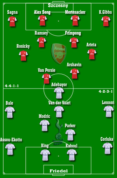 Bên phía Tottenham, khó khăn lớn nhất là sự vắng mặt của 2 trung vệ hàng đầu Gallas và Dawson. Trong khi Huddlestone vẫn đang trong phòng điều trị. Pienaar có thể ra sân nếu phục hồi sớm. Còn các vị trí khác đều rất ổn. Modric hẳn sẽ chơi với trạng thái hưng phấn hơn khi anh đã được bật đèn xanh về một mức lương cao ngất ngưởng. Aderbayor thì vẫn còn nguyên đó khát khao chứng tỏ khả năng với các CĐV đội bóng cũ.