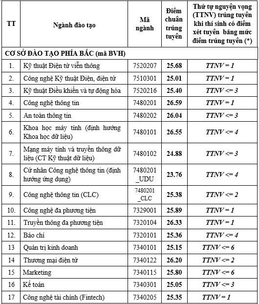 Sáng ngày 23/8, Học viện Công nghệ Bưu chính Viễn thông thông báo điểm chuẩn trúng tuyển theo phương thức xét tuyển dựa vào kết quả thi tốt nghiệp trung học phổ thông năm 2023 và kế hoạch xác nhận nhập học, nhập học.