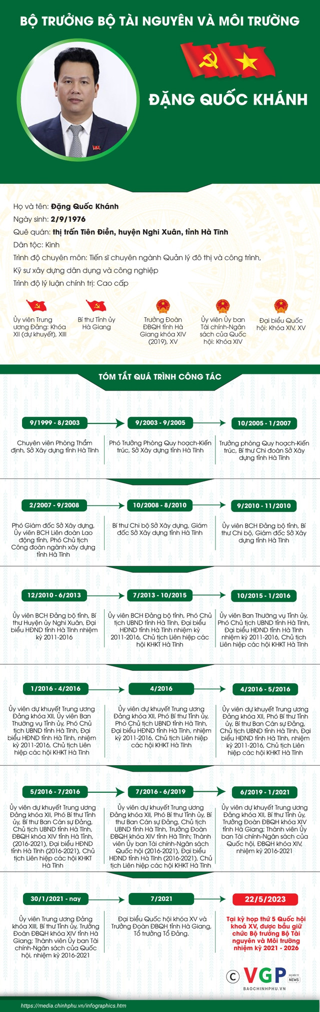 Phê chuẩn bổ nhiệm Bí thư Tỉnh ủy Hà Giang Đặng Quốc khánh giữ chức Bộ trưởng Bộ Tài nguyên và Môi trường