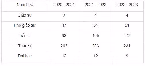 Tuy nhiên, giảng viên có trình độ giáo sư rất ít biến động, chỉ tăng 1 người và theo báo cáo có 4 giáo sư tính đến năm học 2022-2023.
