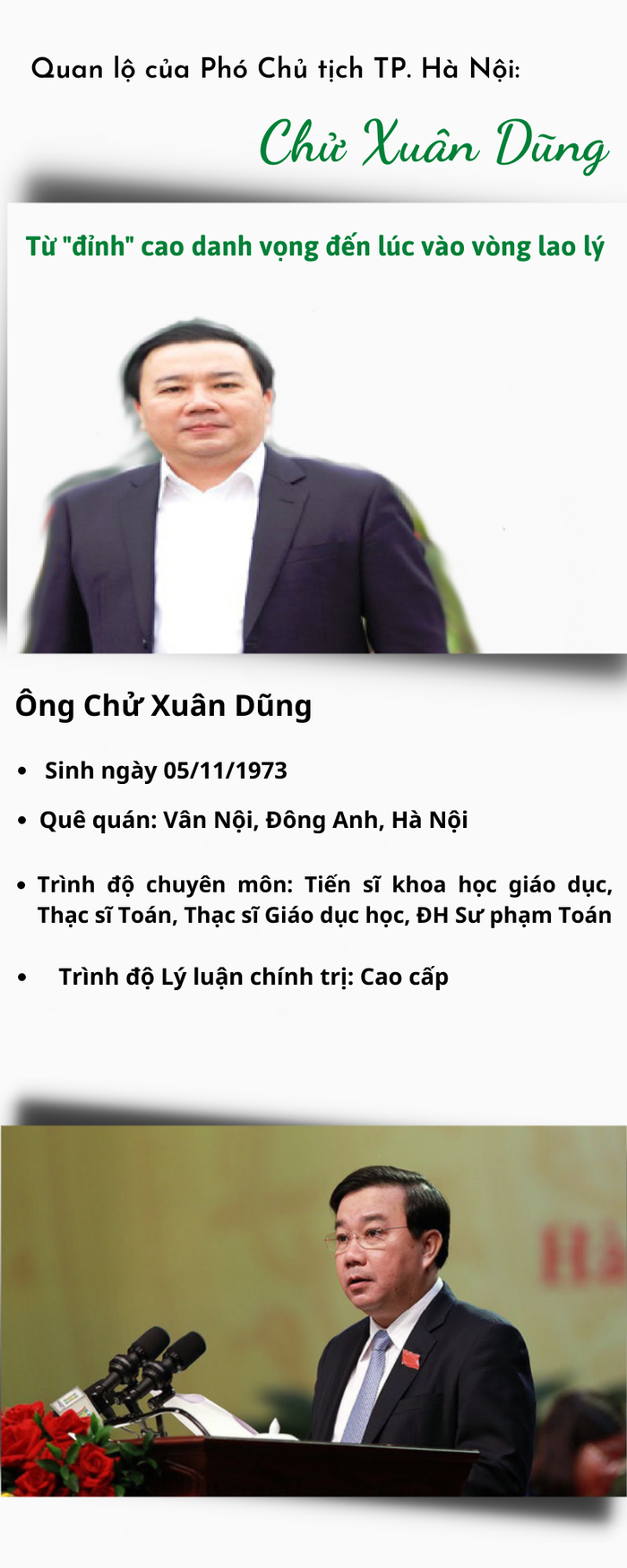Cùng nhìn lại con đường thăng tiến từ giáo viên trung học phổ thông đến vị trí Phó Chủ tịch thành phố Hà Nội của ông Chử Xuân Dũng rồi khi vướng vào vòng lao lý vì "nhận hối lộ":