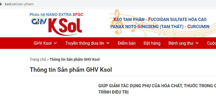 Cụ thể, quan kiểm tra, Cục An toàn thực phẩm công bố: Trong thời gian vừa qua trên các website https://ksol.vn/san-pham quảng cáo sản phẩm thực phẩm bảo vệ sức khỏe GHV KSOL với công dụng không đúng sự thật, lừa dối người tiêu dùng, vi phạm quy định về quảng cáo.