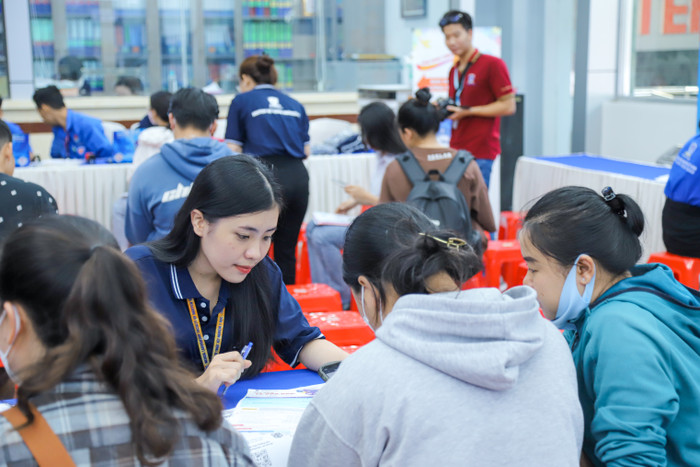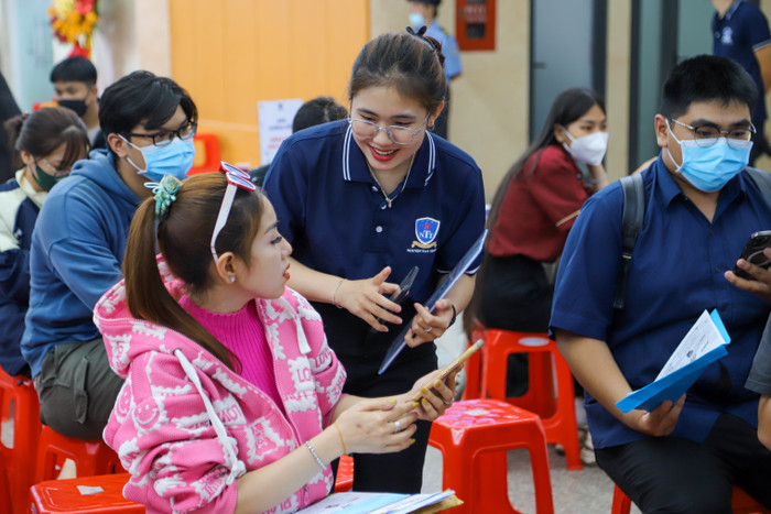 Bên cạnh đó, Nhà trường còn bố trí và tăng cường lực lượng sinh viên tình nguyện hướng dẫn tân sinh viên cách ghi phiếu đăng ký, kiểm tra thông tin ghi trên hồ sơ nhập học, chụp ảnh, làm thẻ sinh viên, giới thiệu và hướng dẫn tham quan môi trường học tập, đăng ký chỗ ở ngoại trú nhằm giúp tân sinh viên nhanh chóng ổn định sinh hoạt và học tập, đồng thời giúp quá trình làm thủ tục nhập học nhanh hơn.