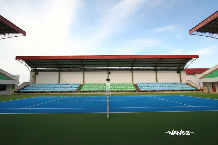 | Sân thi đấu môn tennis vẫn còn khá ngổn ngang |
