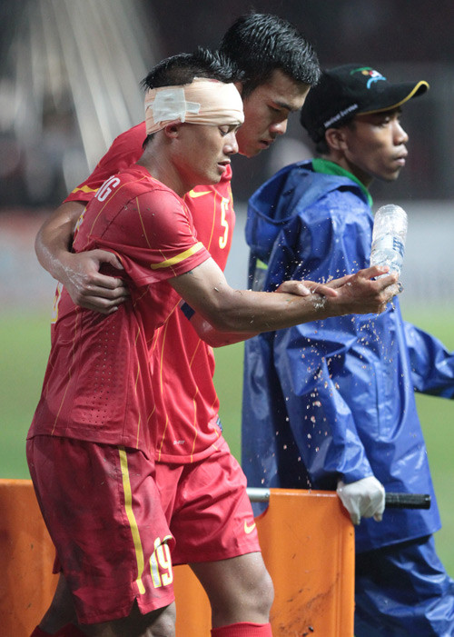 | Dính chấn thương đầu nhưng Thành Lương vẫn thi đấu cho tới cuối trận. |