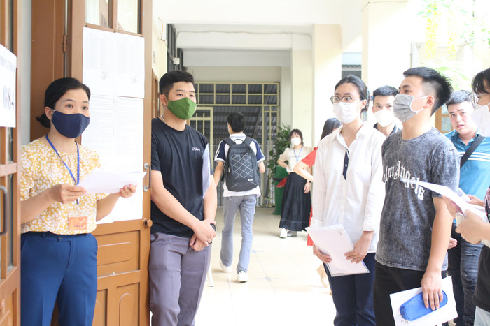 | Thí sinh có mặt từ sớm để chuẩn bị làm thủ tục dự thi tốt nghiệp trung học phổ thông 2022. (Ảnh: Phạm Minh) |
