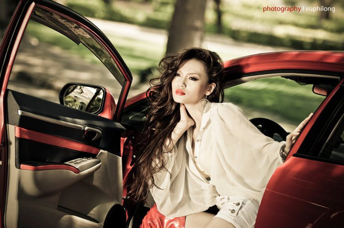 Siêu mẫu Cao Thùy Linh khoe dáng nuột nà bên Civic độ