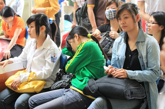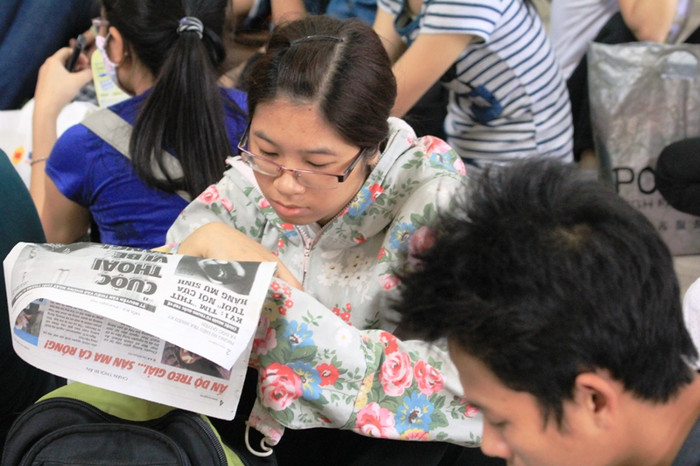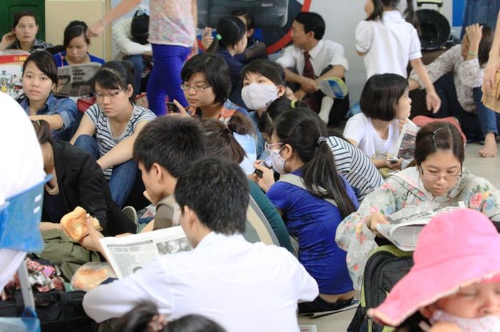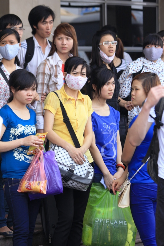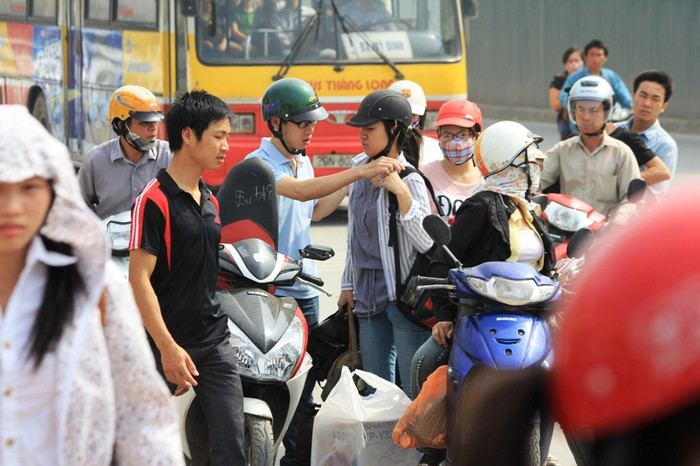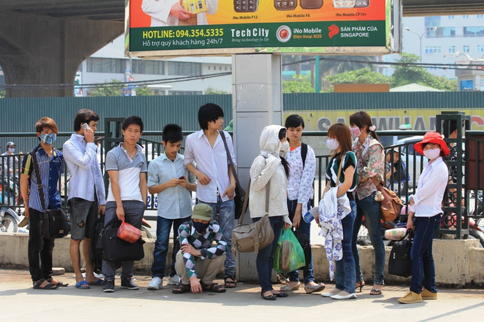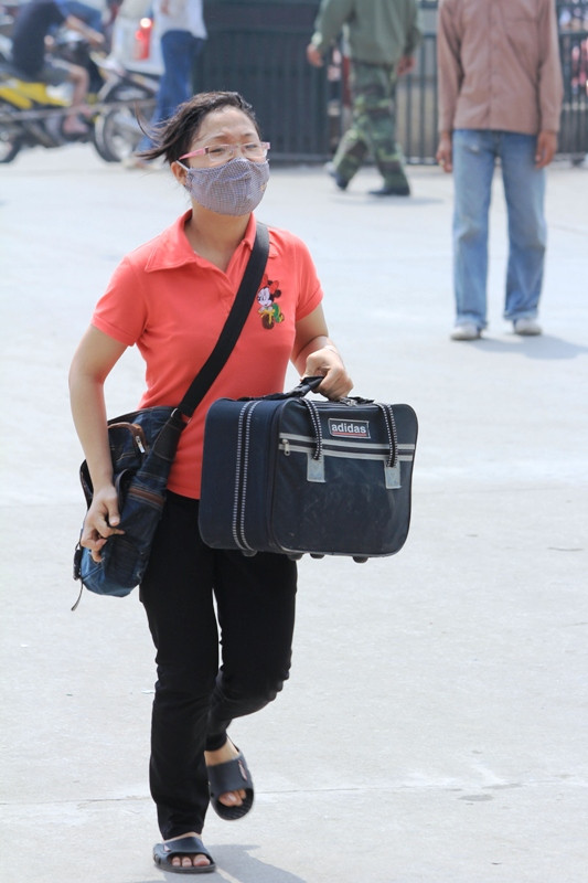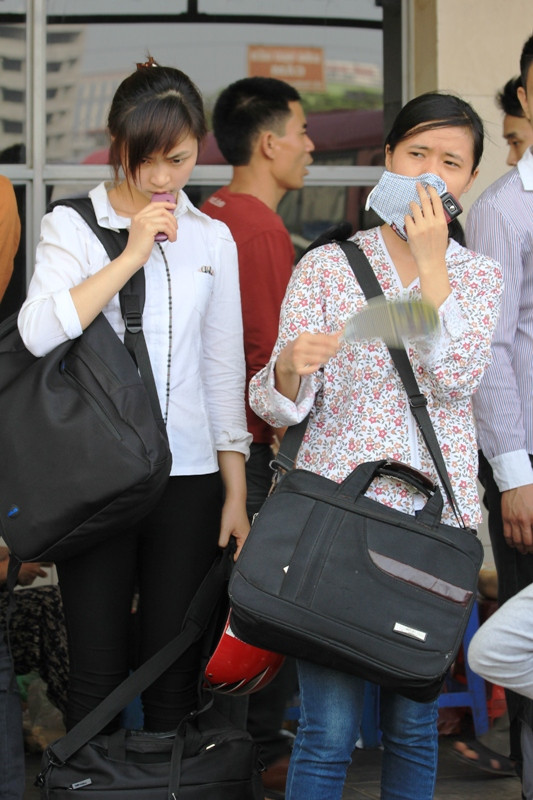| Ngay trước cổng BX Mỹ Đình (Hà Nội) - các tuyến xe chạy các tỉnh phía Bắc cũng đã chật cứng. Dưới tiết trời oi bức nhiều sinh viên nhễ nhại đợi xe về quê. |