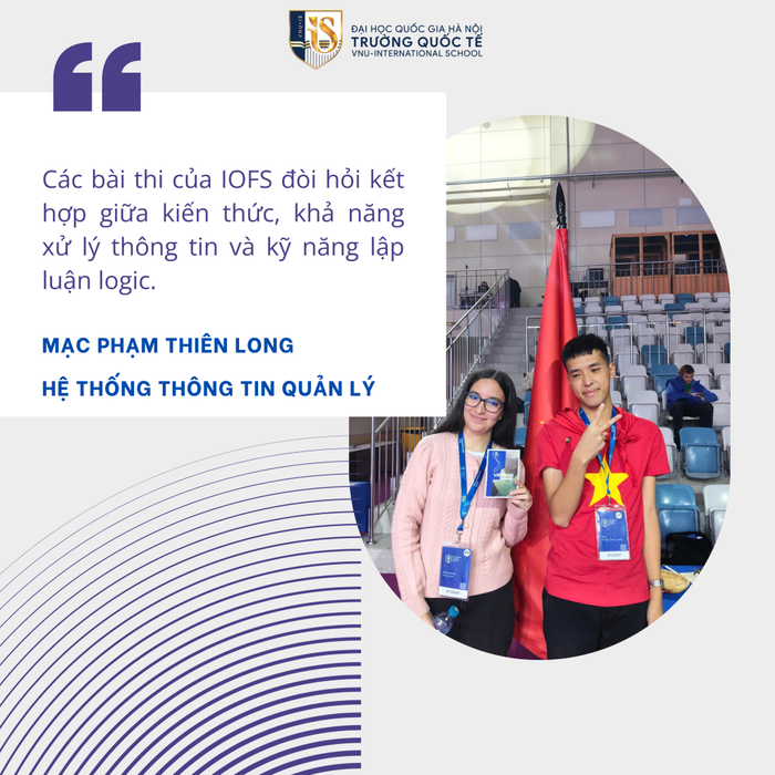 Nhớ lại những khoảnh khắc đặc biệt tại IOFS 2025, Yến Nhi chia sẻ: “Em vẫn nhớ cảm giác hồi hộp khi bước vào phòng thi và nhìn thấy lá cờ Việt Nam trên bảng tên trước mặt. Khoảnh khắc ấy khiến em cảm nhận sâu sắc niềm tự hào như mang theo hình ảnh quê hương đến với bạn bè quốc tế, dù đang cách xa hàng nghìn cây số. Với em, IOFS không chỉ là một cuộc thi, mà còn là hành trình để khám phá và vượt qua chính mình.