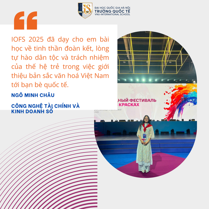 Không chỉ riêng Yến Nhi, các sinh viên khác của Trường Quốc tế - Đại học Quốc gia Hà Nội cũng xem IOFS là một trải nghiệm vô cùng đáng giá, nơi các bạn được học những điều mà không một bài giảng nào có thể truyền tải trọn vẹn.