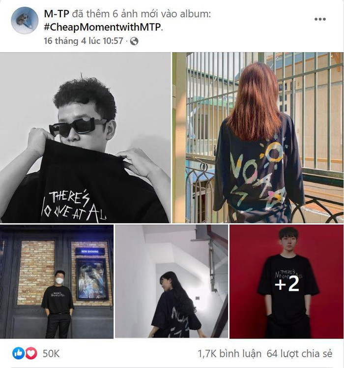 Thậm chí, fanpage chính thức của Sơn Tùng M-TP với 14 triệu người theo dõi còn dành hẳn 1 album ảnh với hashtag #CheapMomentwithMTP để liên tục cập nhật những hình ảnh của các Sky cùng áo giới hạn (tên gọi thân mật của cộng đồng hâm mộ nghệ sĩ Sơn Tùng M-TP).