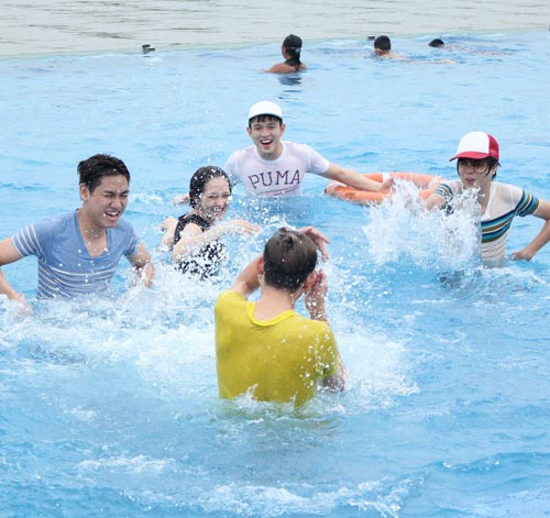 | Ngoài bộ đôi hot của The Voice, chương trình còn có sự tham gia của Vmusic trong vai trò khách mời. Họ đã có những khoảnh khắc đáng nhớ trong buổi vui chơi, nghỉ ngơi này. |