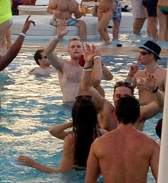 | Hình ảnh hoàng tử Harry quậy tại bể bơi của khách sạn cùng những người bạn thân. |