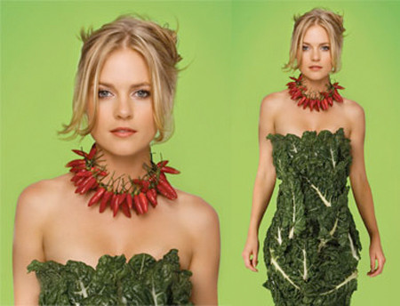 | Người đẹp Isabel Rosec trong trang phục bằng lá rau bắp cải qua bộ hình ủng hộ ăn rau xanh của PETA. Ảnh. fundoopictures. |