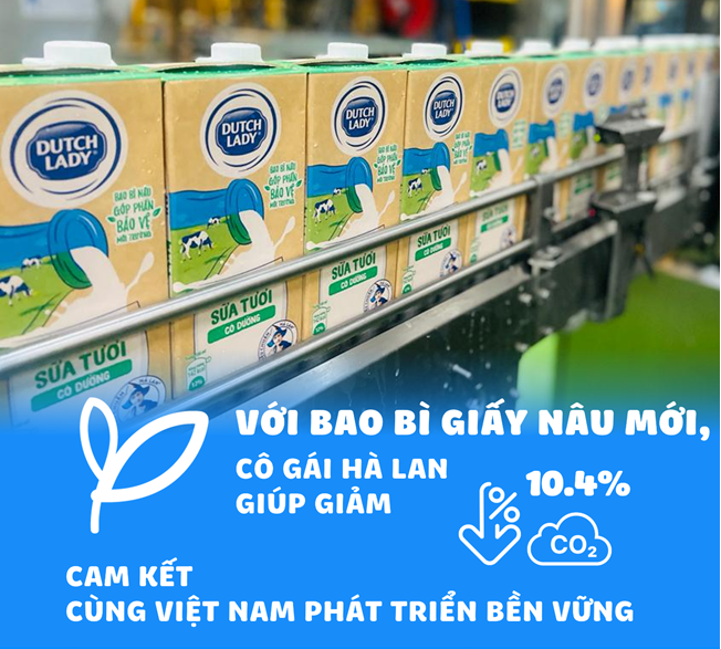 Trên tinh thần đó, FrieslandCampina Việt Nam còn tiên phong cải tiến và đổi mới bao bì sản phẩm cho các sản phẩm sữa Cô Gái Hà Lan. Bao bì giấy nâu mới bằng chất liệu nhựa sinh học Bio-PE có nguồn gốc từ bã mía thân thiện với môi trường giúp hạn chế 10,4% khí thải CO2 ra môi trường so với bao bì thông thường, và trong 10 năm tới sẽ giúp giảm thiểu đến 517 tấn khí nhà kính và 392 tấn nhựa hoá thạch. Ngoài ra, tập đoàn đặt mục tiêu 100% bao bì của các sản phẩm có khả năng tái chế hoặc tái sử dụng, và trên 99% nguyên liệu bao bì phế thải sẽ được tái sử dụng tới năm 2025.