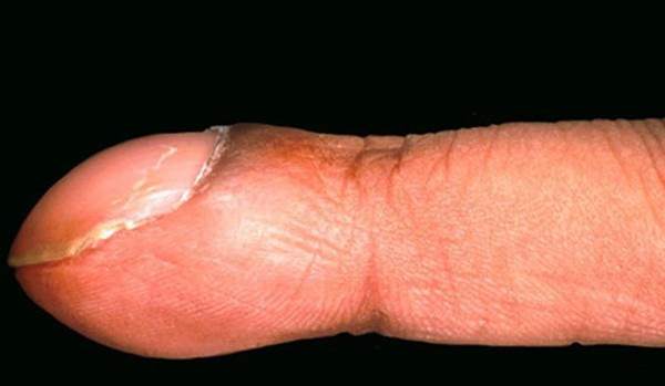Đây là trường hợp các móng tay cong lên một cách bất thường xung quanh ngón. Biểu hiện này có thể vô hại do tăng lưu lượng máu đến các ngón tay.
