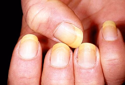 Móng tay màu vàng cảnh báo tình trạng sử dụng lâu dài sơn móng tay, hay có thể chỉ ra bệnh nấm móng hoặc bệnh vẩy nến.
