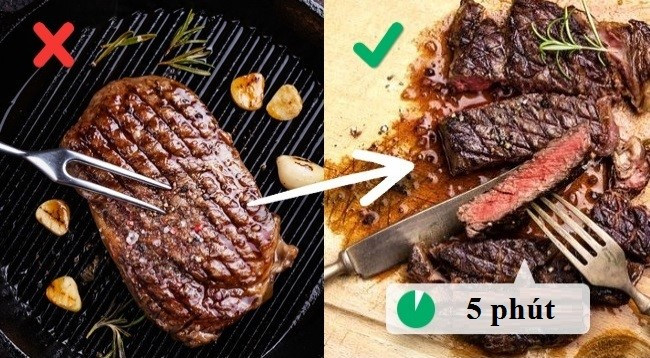 Dù có quá đói hay bị hấp dẫn bởi món ăn, bạn cũng nên kiên nhẫn chờ khoảng vài phút sau khi nấu chín thịt. Điều đó sẽ giúp bạn cảm nhận được hết hương vị thơm ngon của thịt.