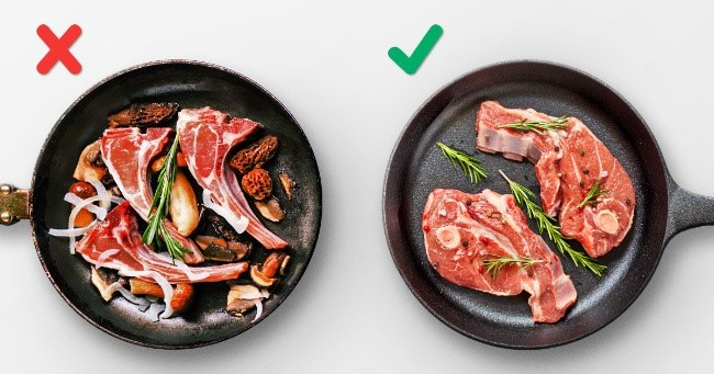 Nếu bạn muốn miếng thịt có lớp vỏ giòn tan, hãy để chúng cách xa nhau khi rán và không nên đặt quá nhiều miếng trên chảo.