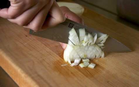 1. Một con dao thật sắc: Một con dao sắc sẽ giúp nhát cắt của bạn thật êm ái và hạn chế các chất gây khó chịu cho mắt có trong củ hành bắn ra ngoài.