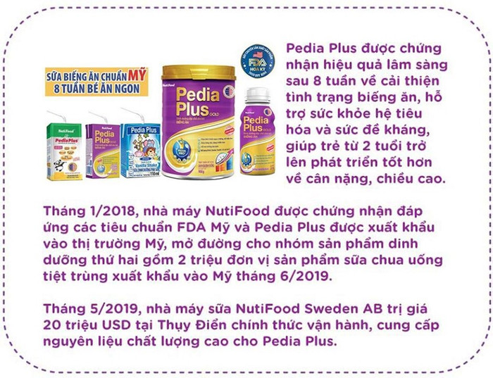 | Pedia Plus đáp ứng các tiêu chuẩn khắt khe để xuất khẩu sang Mỹ. |
