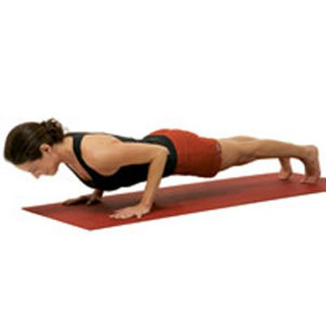 - Bắt đầu ở tư thế chống đẩy với ngón chân bấm xuống sàn, tay chống xuống sàn, cơ thể thằng từ đầu đến gót chân