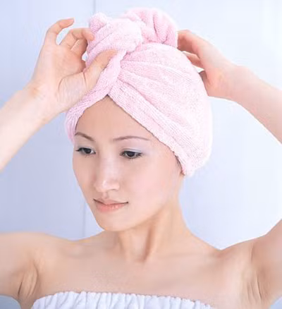 Sau khi bôi, quấn toàn bộ tóc lại rồi ủ bằng nón tắm hoặc khăn bông sạch và ấm. Nhiệt độ sẽ làm biểu bì tóc mở ra và dưỡng chất dễ dàng thấm sâu vào bên trong hơn.