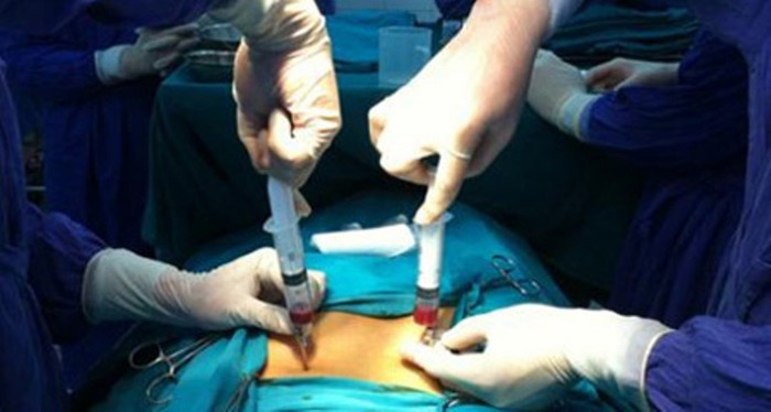 Vị đại gia từng giám đốc một DN lớn kể, cách làm rất đơn giản, chỉ mất vài phút với một chiếc kim dài cỡ 10cm, kỹ thuật viên đưa vào vùng rốn hút ra khoảng 5 gram mỡ bụng chẳng hề đau đớn gì và đưa đi nuôi cấy.