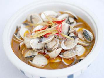 Thịt ngao 200g. Ngao luộc cho há miệng, thịt ngao chấm với nước mắm gừng, dầu vừng để ăn.