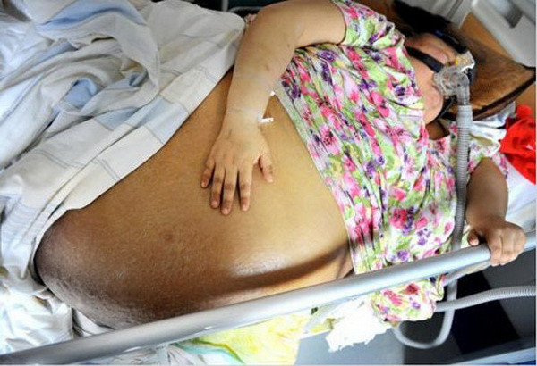 Với cân nặng 110kg, cuộc sống và sinh hoạt của cô Dương Lệ Quyên (người Lam Châu, Trung Quốc) đã gặp rất nhiều khó khăn, bất tiện. Tất cả đều bắt nguồn từ căn bệnh lạ xuất hiện cách đây 12 năm làm cho bụng cô không ngừng bị “thổi phồng” lên như trái bóng.