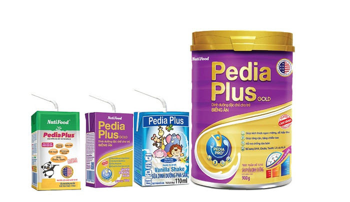 | PediaPlus được sản xuất trên dây chuyền công nghệ hiện đại của NutiFood được tổ chức kiểm nghiệm độc lập Michelson Laboratories - Hoa Kỳ chứng nhận đáp ứng các tiêu chuẩn khắt khe của FDA Hoa Kỳ . PediaPlus được chứng nhận hiệu quả lâm sàng sau 8 tuần về cải thiện tình trạng biếng ăn, hỗ trợ sức khỏe hệ tiêu hóa và sức đề kháng giúp trẻ phát triển tốt hơn về cân nặng lẫn chiều cao. Nay nhãn hàng Pedia Plus Gold – đặc chế cho trẻ BIẾNG ĂN, với công thức đột phá PEDIA PRO+ dễ hấp thu sẽ hỗ trợ sức khỏe tổng thể, chống táo bón, kích thích ngon miệng giúp trẻ nhanh chóng bắt kịp đà tăng trưởng.