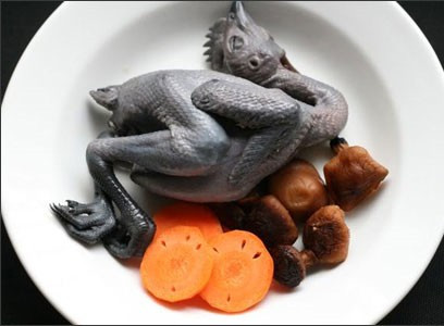 Gà trống 1 con làm sạch, cho rượu vào hầm chín. Dùng cho các trường hợp thận hư, ù tai chóng mặt.