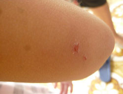 “Ngay sau khi bị bọ xít đốt, con gái tôi lập tức cháu có biểu hiện sốt cao, đau rát, sưng tấy. Chúng tôi phải cho cháu uống hạ sốt và tiêu độc suốt 2 ngày, đến nay vết thương đã giảm nhưng tay vẫn còn mẩn đỏ”.