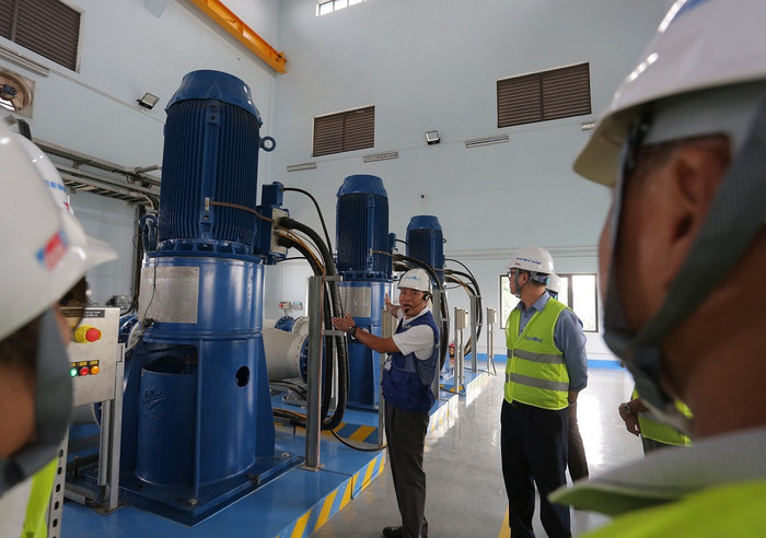 | Các khách mời tham quan nhà máy rất bất ngờ khi được tận mắt chứng kiến công nghệ hiện đại, tự động hóa, cho ra nước sinh hoạt thật sự sạch, đảm bảo an toàn cho sức khỏe của nhân dân. |