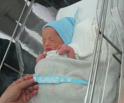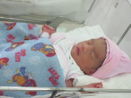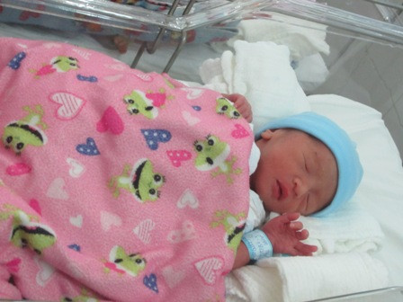 | Hai bé trai (mũ màu xanh) và bé gái (mũ màu hồng) có cân nặng lần lượt là 2kg; 1,8kg và 1,5kg. Ảnh TN |